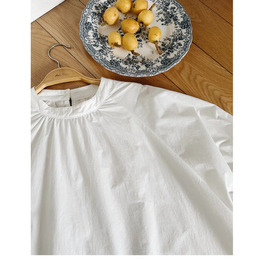 ギャザー使いでふんわりシルエット☆ラグランスリーブ タイプライターコットン プルオーバーブラウス☆