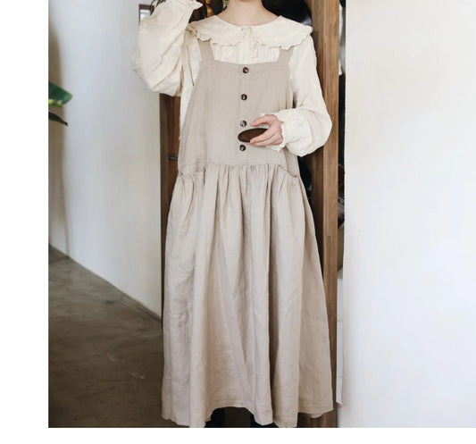 ウエストギャザー◇リネン ジャンパースカート ドレス◇