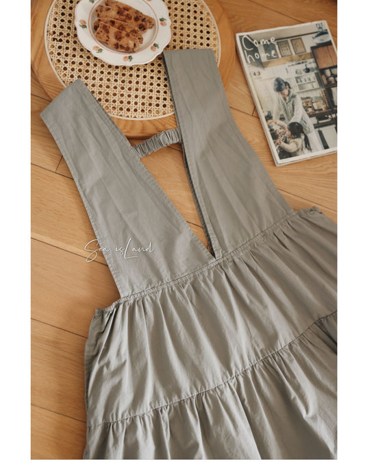 グレーグリーンの色味が◎コットン ジャンパースカート ドレス