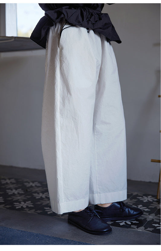 サークル型のバックポケットが可愛い◇コットン 9部丈 イージーワイドパンツ◇ホワイト