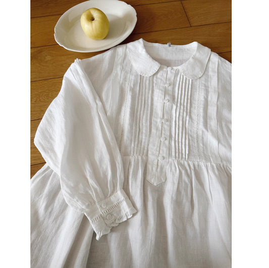 フレンチアンティークスタイル✩バンドカラーゆったり ロングスモック ワンピース✩