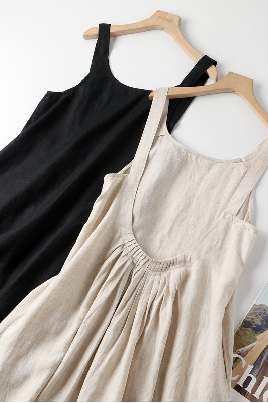 2色展開◇重ね着用◇レディース リネン バックギャザー ジャンパードレス◇