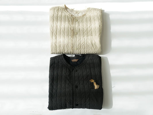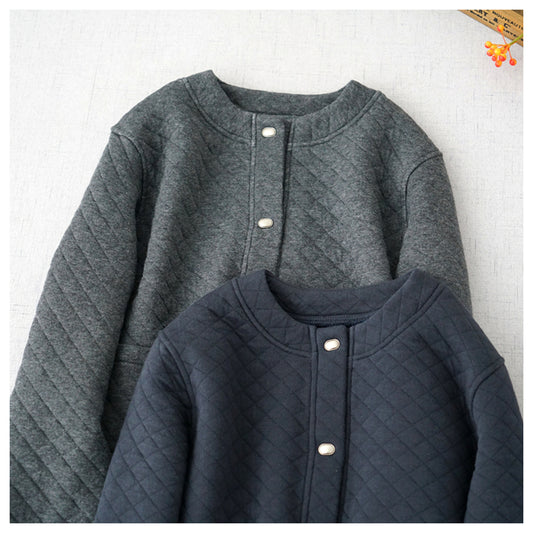 2色展開◇秋冬に大活躍◇キルティングコットン中綿 ノーカラージャケット◇