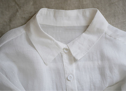 2色展開◇控えめなフリルネックが上品に◇夏にぴったり ラミー プルオーバーシャツ◇
