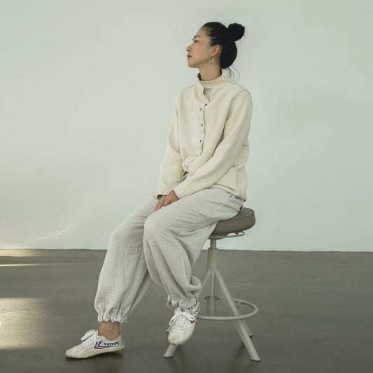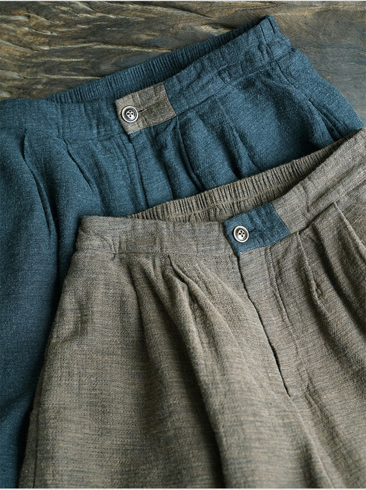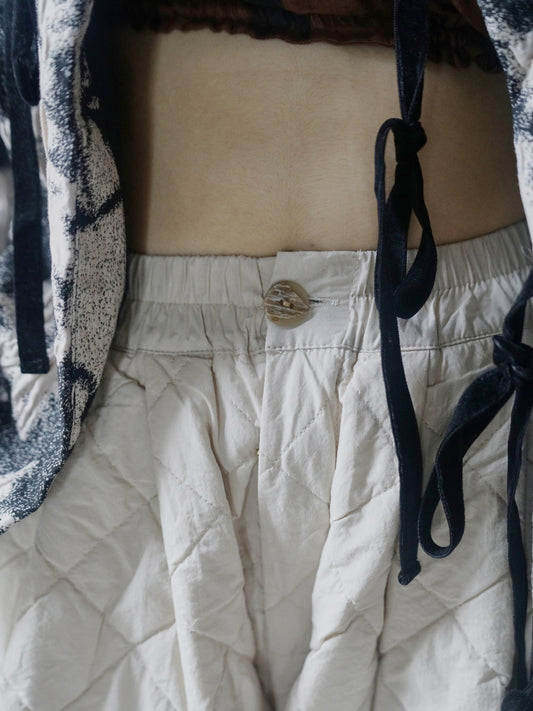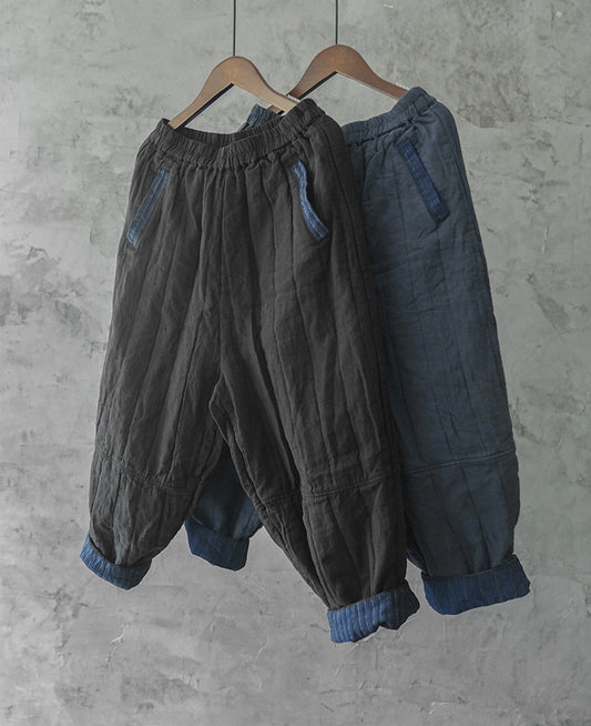 2色展開◇裏地&切替え◇程良いバルーンシルエット◇リネン9部丈 中綿イージーパンツ◇