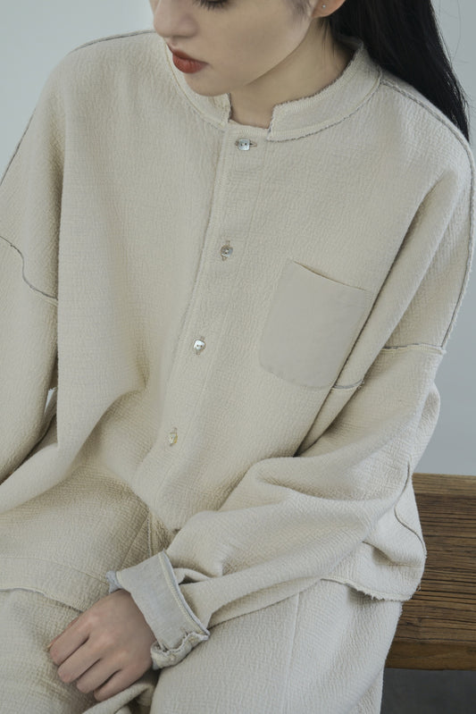 2色展開◇独特の表情豊かなテクスチャー ニット バンドカラーシャツ◇