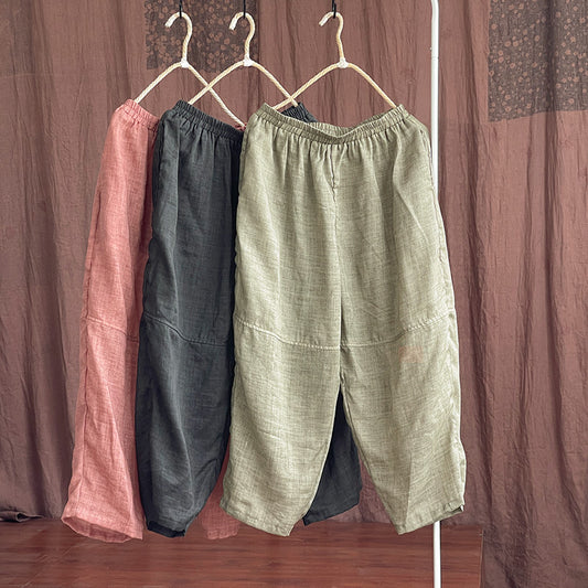 2色展開◇裾切替え&絞り◇程良いバルーンシルエット◇リネン9部丈 イージーパンツ◇