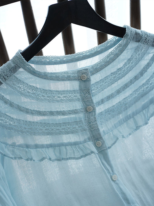2色展開◇夏にぴったり 上品なフリル&レース装飾 ラミー ブラウス◇