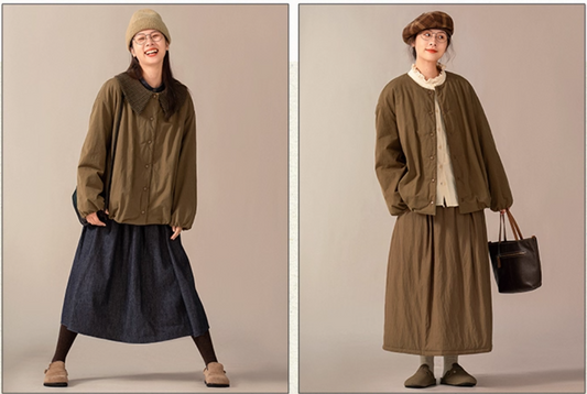 取り外し可能な衿付きで2WAYスタイル◇うっすら中綿入り◇コットン ドロップショルダーパフブルゾンジャケット△裏地付き S/Mサイズ