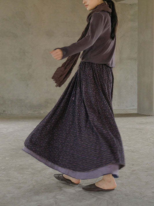 格子柄×ボタニックプリント☆レイヤーロングスカート☆