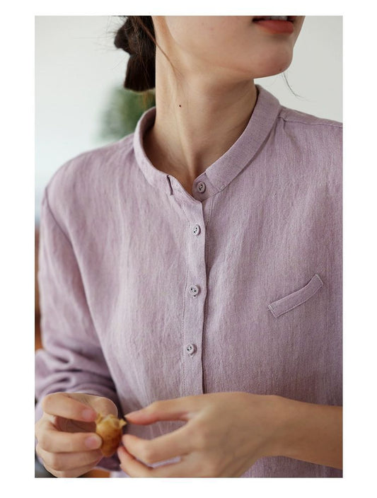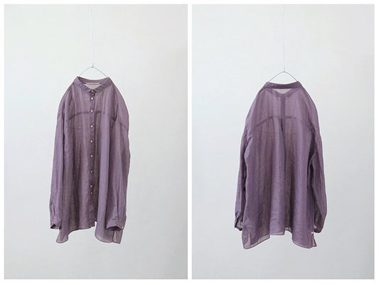 品のある紫の色味が素敵✩ドロップショルダー ラミー長袖 シャツ☆M/Lサイズ