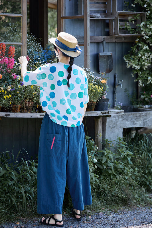 夏に履きたい色味◇ブルーコットン 9分丈ワイド イージーパンツ◇