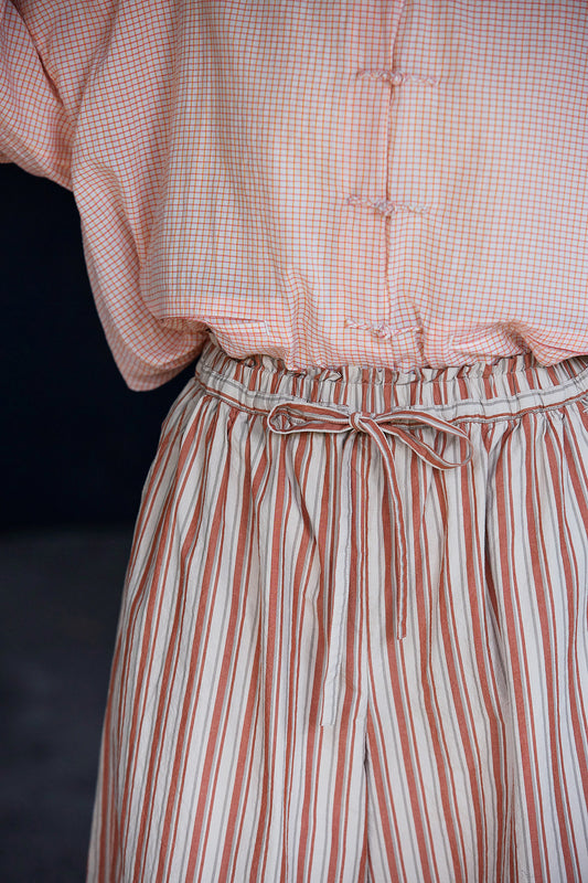 夏に履きたい色味◇上質なストライプコットン 9分丈ワイド イージーパンツ◇