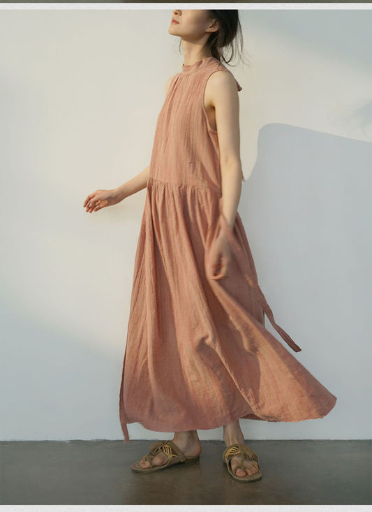 後染めの味わい深い色味が絶妙✩ノースリーブハイネック ウェストギャザー リネンコットン ワンピース✩