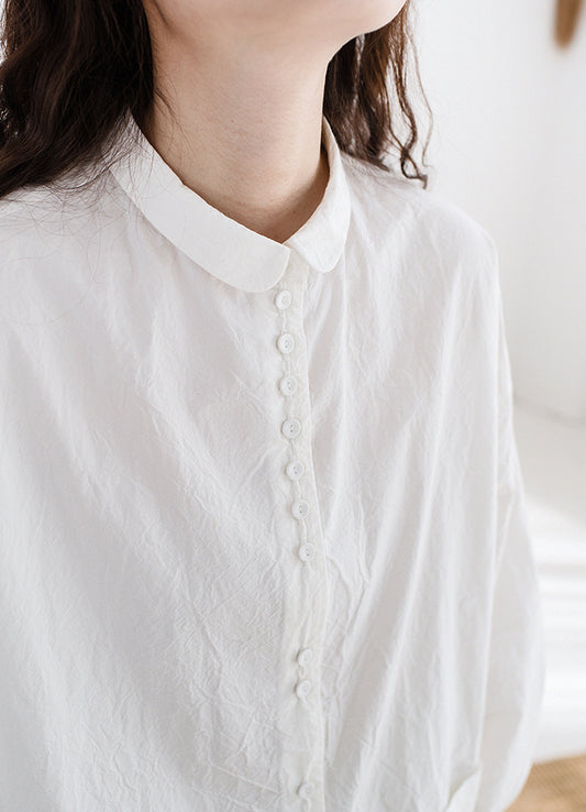 小ぶりな丸襟が可愛い◇ボタン装飾 ドロップショルダーコットンカバーオールシャツ◇