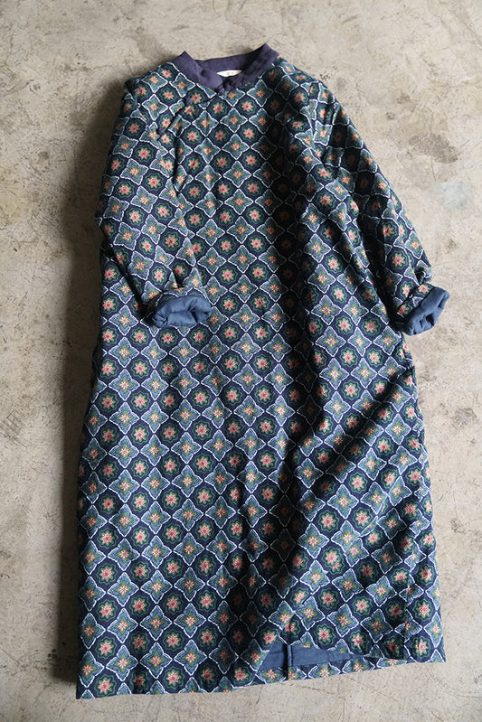 2色展開◇ボタニックプリント◇うっすら中綿生地で暖かオリエンタルワンピースドレス◇