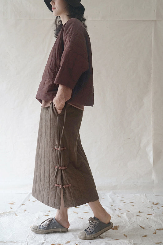 2色展開◇ボタン装飾がポイントに◇秋冬用 中綿入り スカート◇