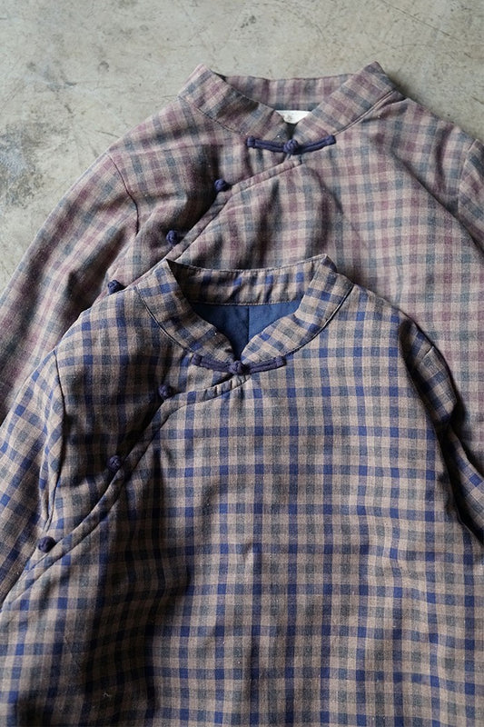 2色展開◇可愛いチェック柄生地◇うっすら中綿生地で暖かオリエンタルワンピースドレス◇