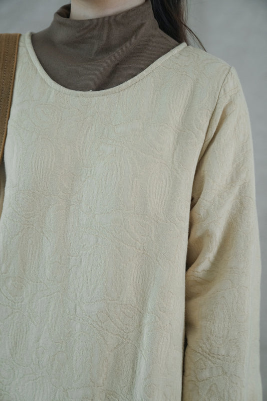 2色展開◇表情豊かなコットンジャガード生地 うっすら中綿生地で暖かワンピースドレス◇