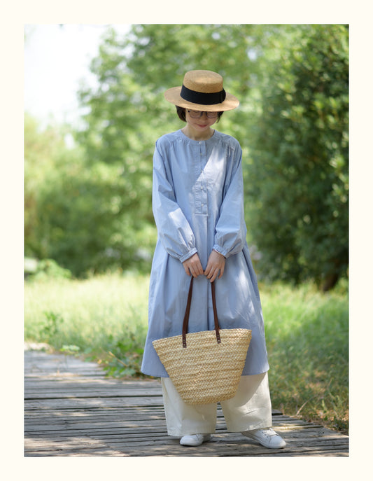 2色展開◇バンドカラー タイプライターコットン ワンピース◇