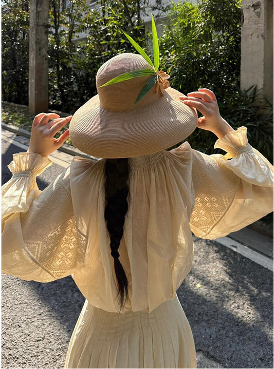 2色展開◇レース&たっぷりギャザー◇ラミー ブラウス&スカート◇