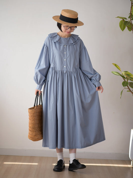 2色展開◇フリルカラー タイプライターコットン ギャザーワンピース◇