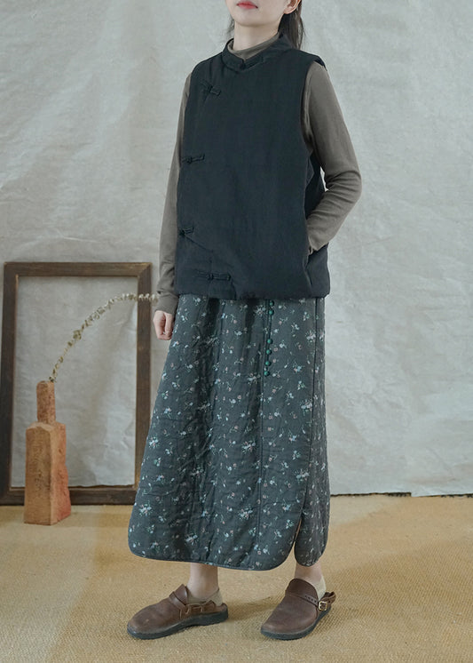 2色展開◇小花柄が可愛い◇ボタン装飾がポイントに◇秋冬用 ダブルフェイスコットン 中綿入り スカート◇