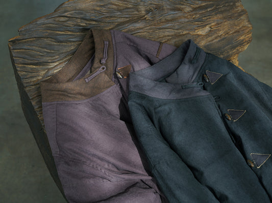 2色展開◇中厚リネン ヘチマ襟 ワークコート◇