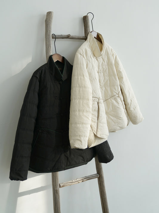 2色展開◇軽量暖かでデイリーユース◇ドロップショルダー コットンジャガード中綿ノーカラーコート◇