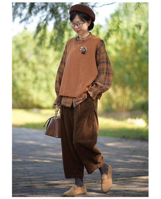 2色展開☆ダブルブレスト コーデュロイベスト☆裏地付き