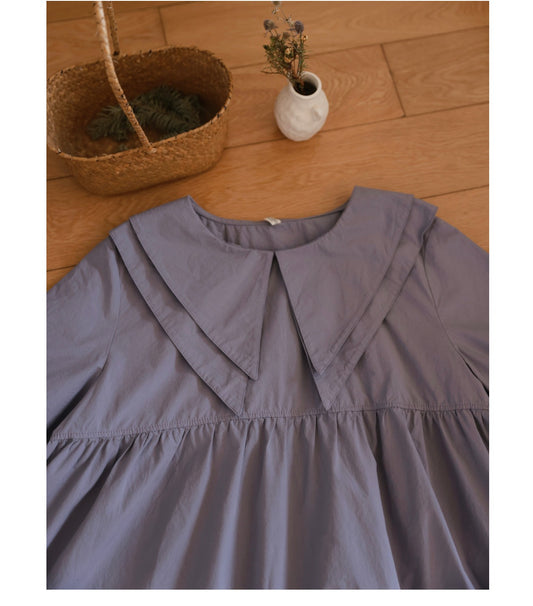 3色展開◇控えめなフリルネックが上品に◇コットン プルオーバーシャツ◇