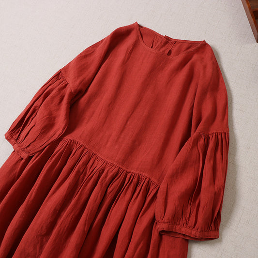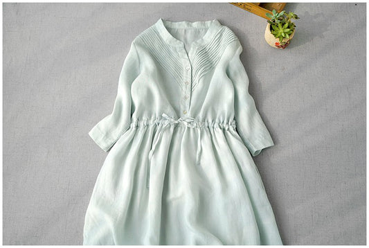 3色展開◇ラミーピンタック Aライン7部丈ワンピース◇インナー付き