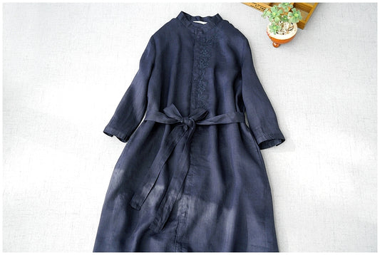 3色展開◇上品な花柄刺繍がポイント◇ラミー7部丈 ロングワンピース◇裏地付き