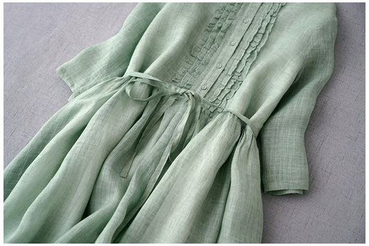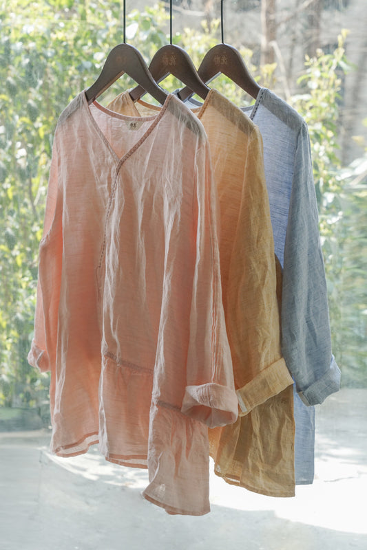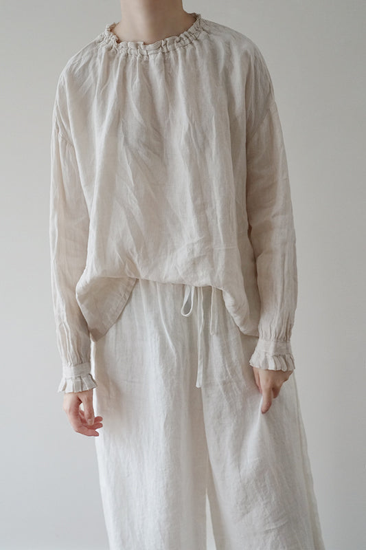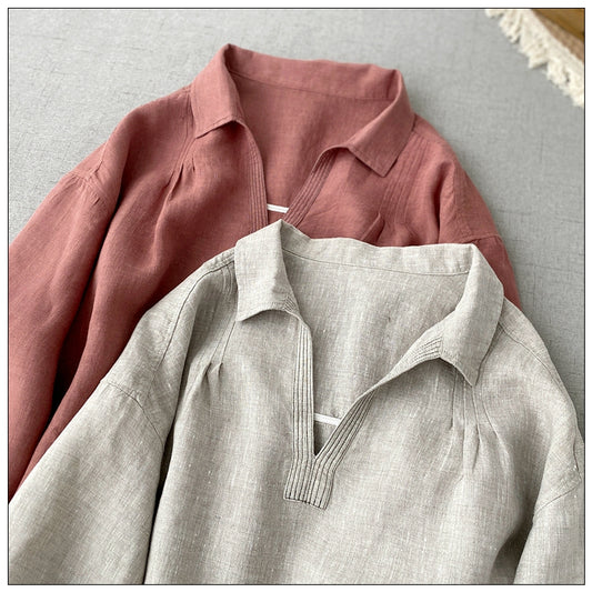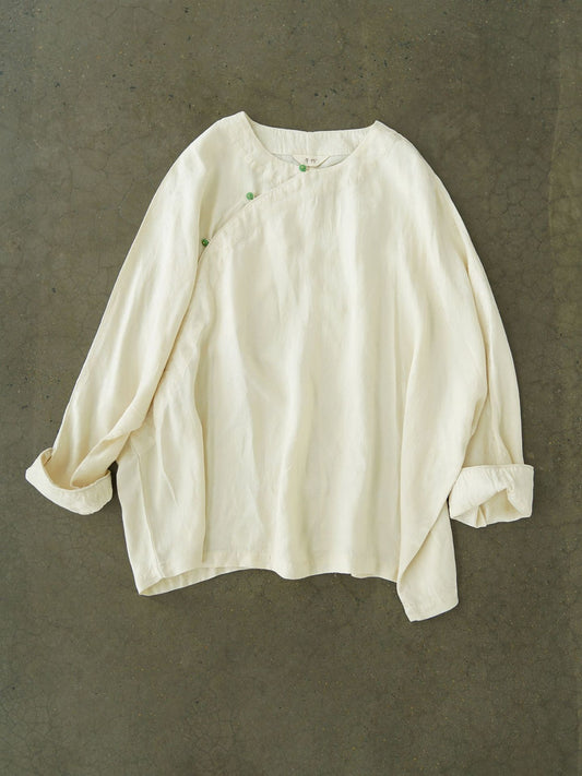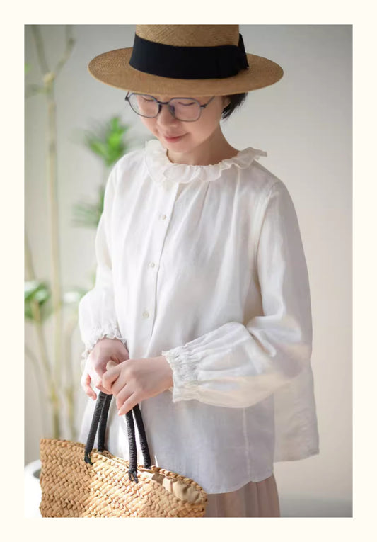 3色展開◇控えめなフリルネックが上品に◇春の色味 リネン プルオーバーシャツ◇