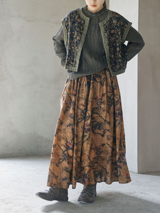 3色展開☆絶妙な色味の花柄が美しい☆切り替えデザインコットンベスト☆