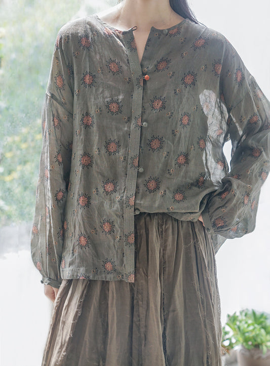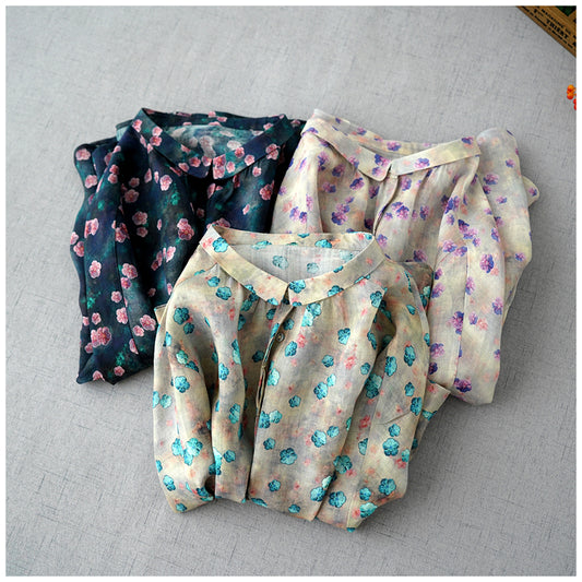 3色展開◇控えめな小花柄で品のあるデザイン◇ラミーシャツ◇