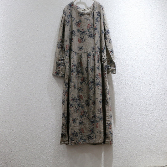 4色展開◇コットン×ラミー花柄ロングワンピースドレス◇
