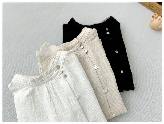 3色展開◇控えめなフリルネックで品のあるデザイン◇ラミーコットンシャツ◇