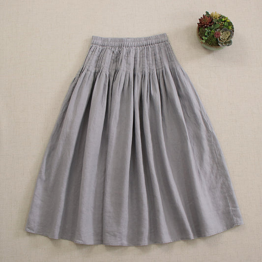 3色展開☆リネンピンタック&ギャザー ロングスカート☆