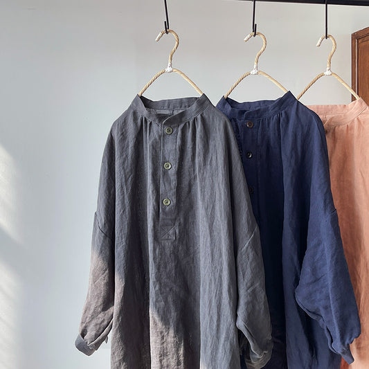 3色展開✩ゆったりシルエット リネン バンドカラー スモックシャツ☆