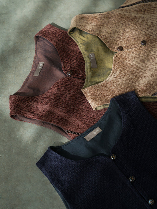 3色展開☆編み込み切り替えがポイントに☆ベロアベスト☆
