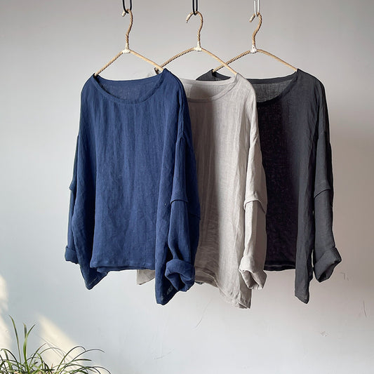 3色展開✩アームのレイヤーデザインがポイントに☆ゆったりシルエットリネンプルオーバーシャツ☆