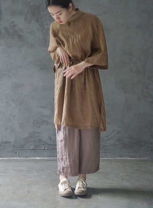 3色展開◇ピンタックデザイン ラミー苧麻100% 7分丈ロングワンピース◇裏地付き