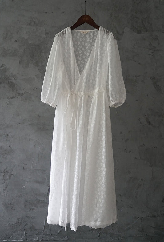 △フラワージャガード生地 ウエストギャザーカシュクールワンピースドレス△