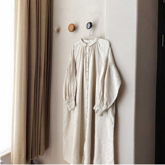 1点のみスペシャルSALE✩即日発送✩アンティークデザイン リネン ロングスモック ワンピース✩