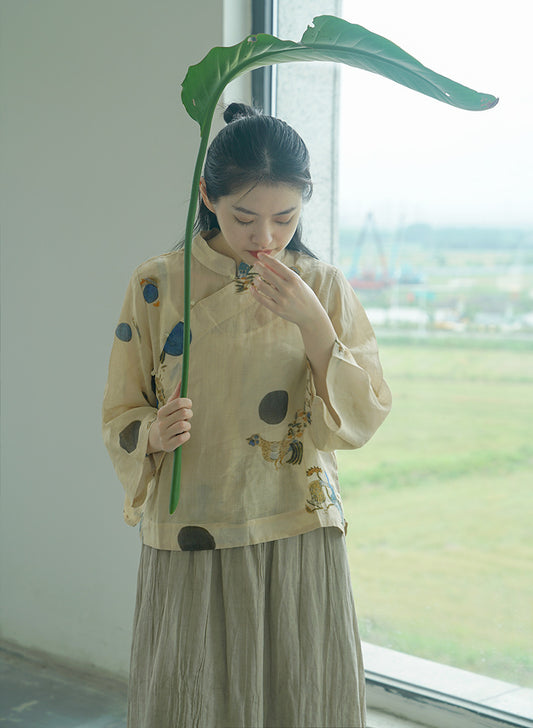 1点のみスペシャルSALE✩◇水彩プリントが美しい ラミーブラウス ◇