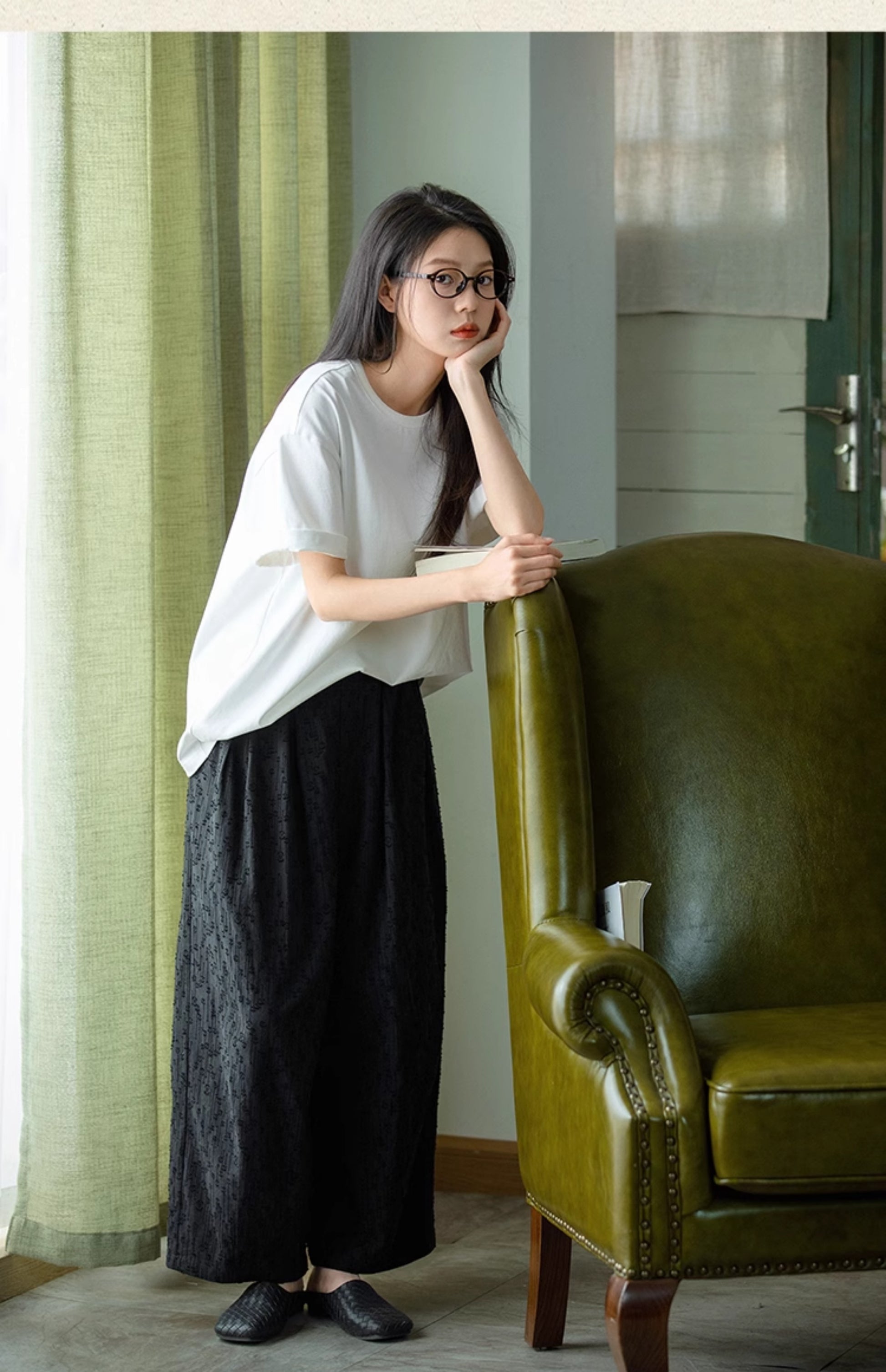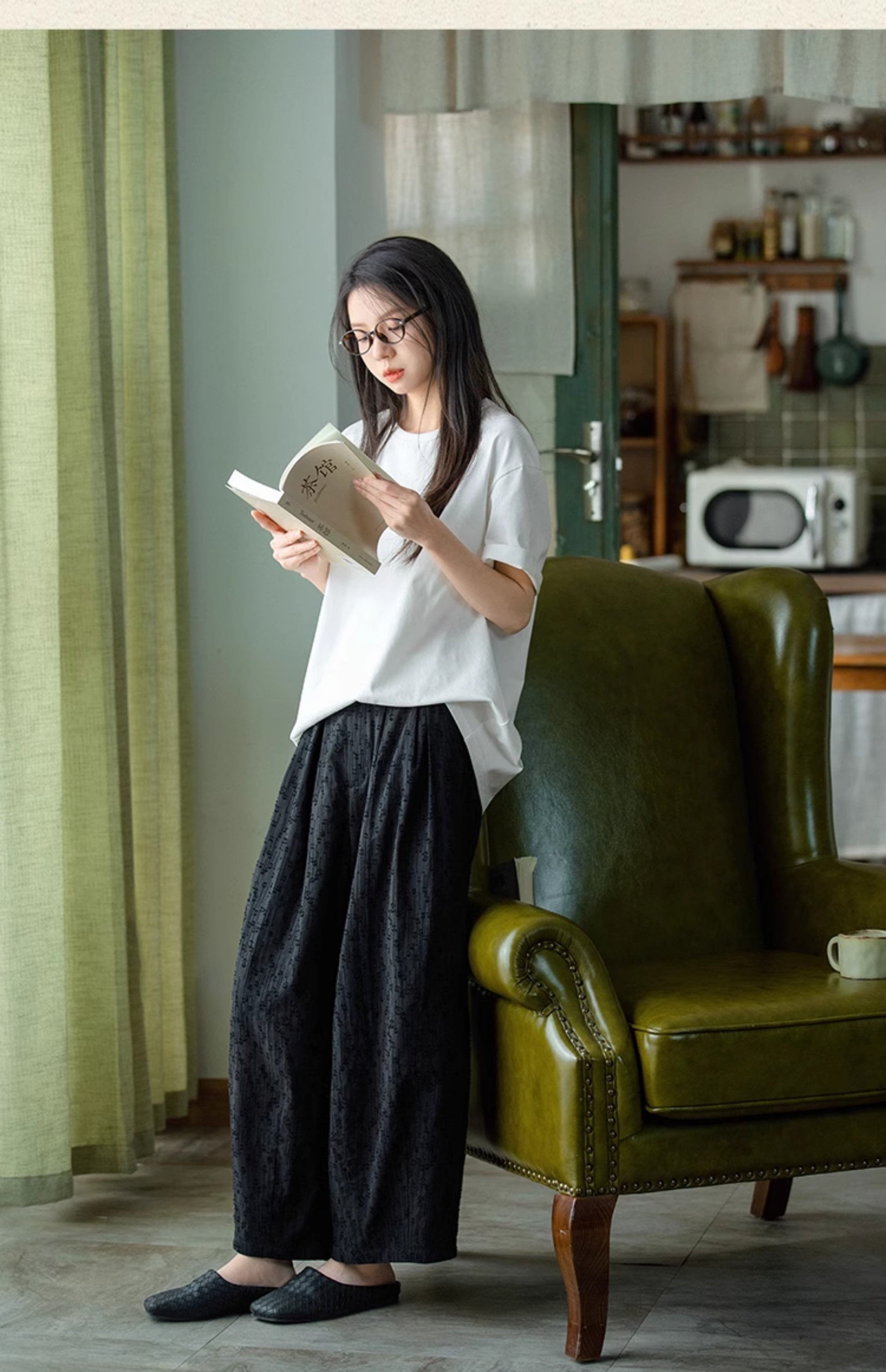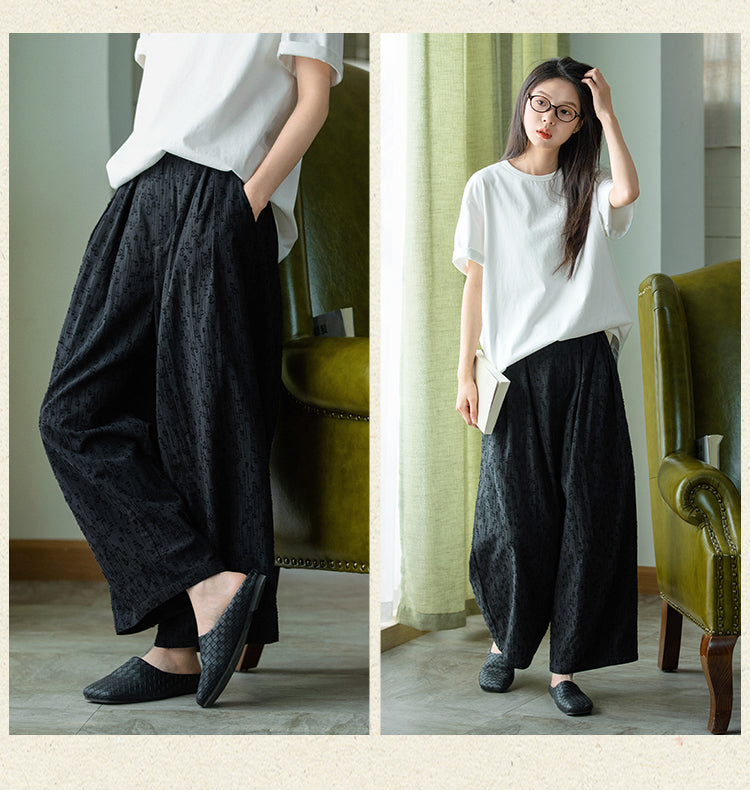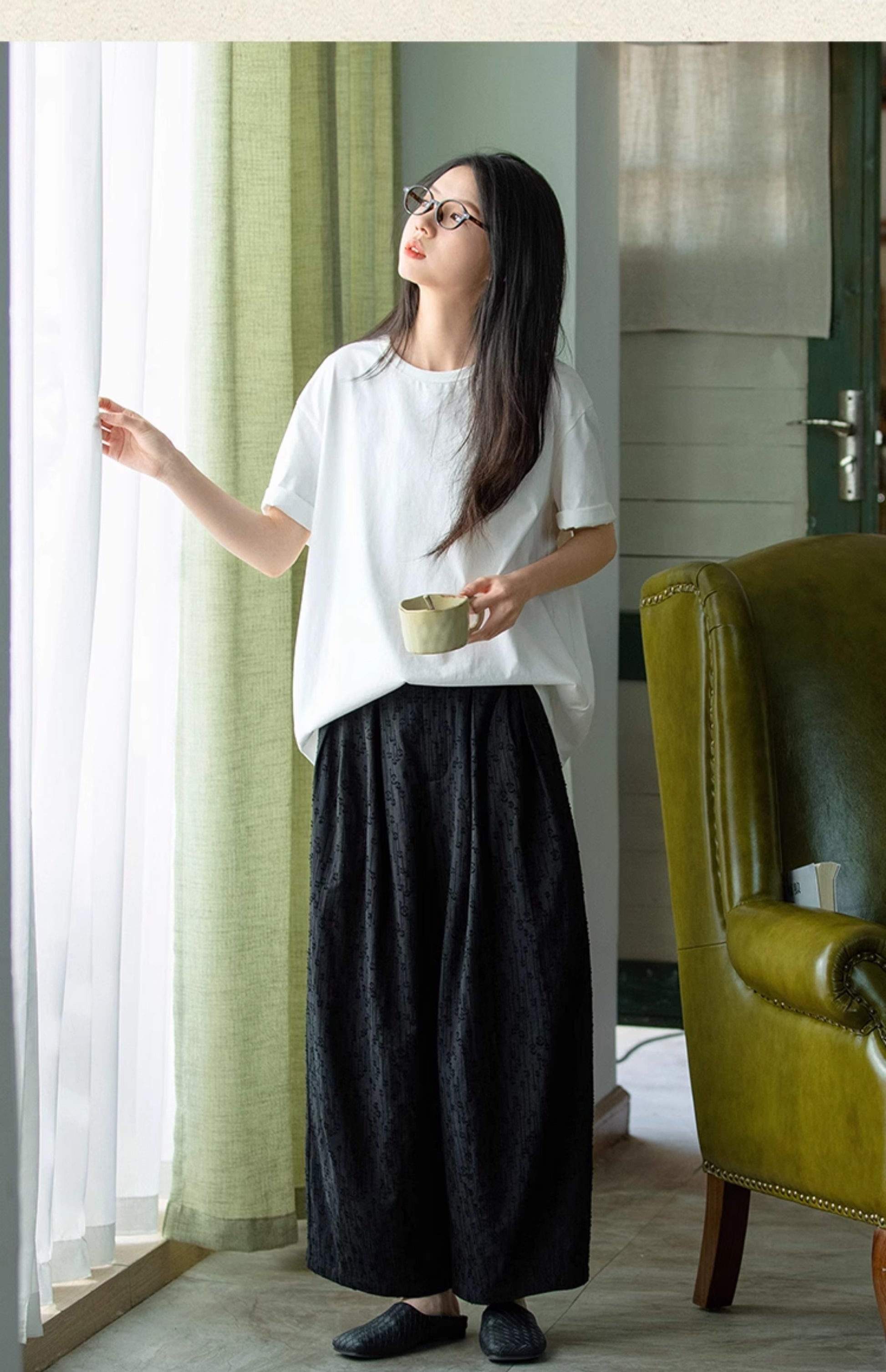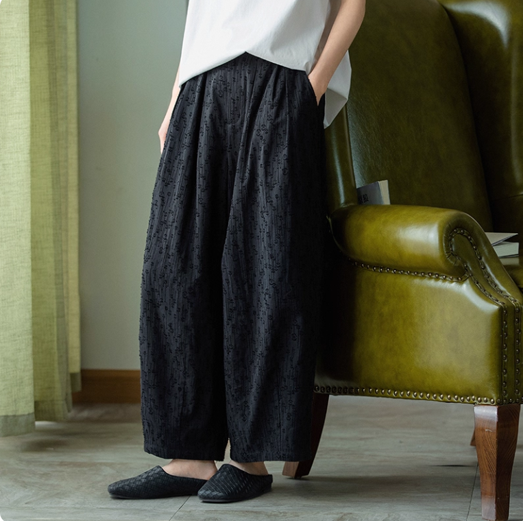 ゆったりシルエット△コットンジャガードの面白い生地感 イージーパンツ▽