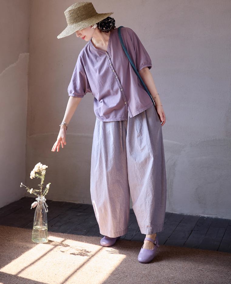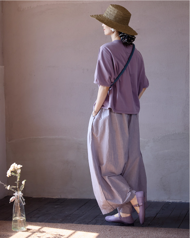 ゆったりシルエット✩コットン 9部丈イージーワイドパンツ✩ M/Lサイズ