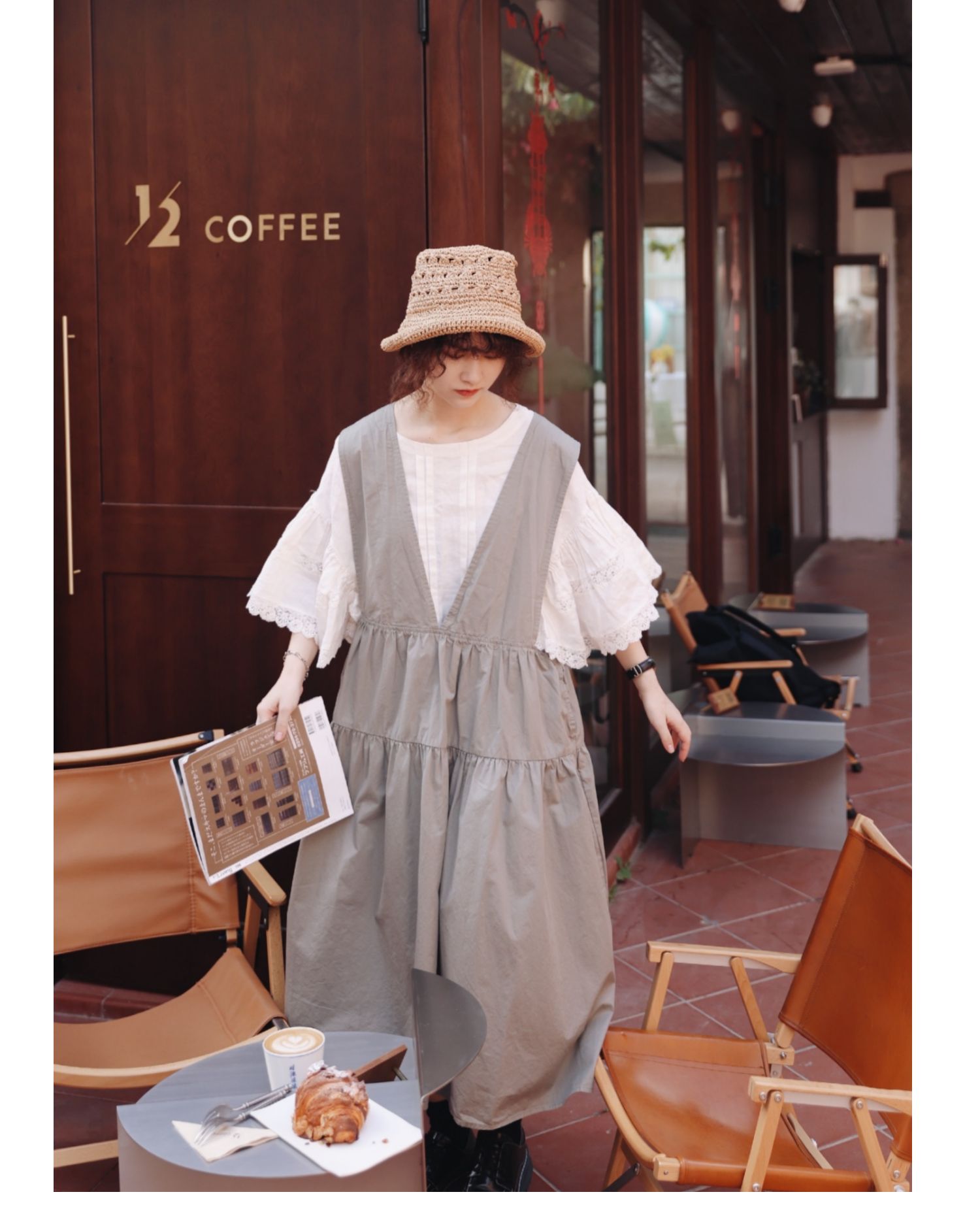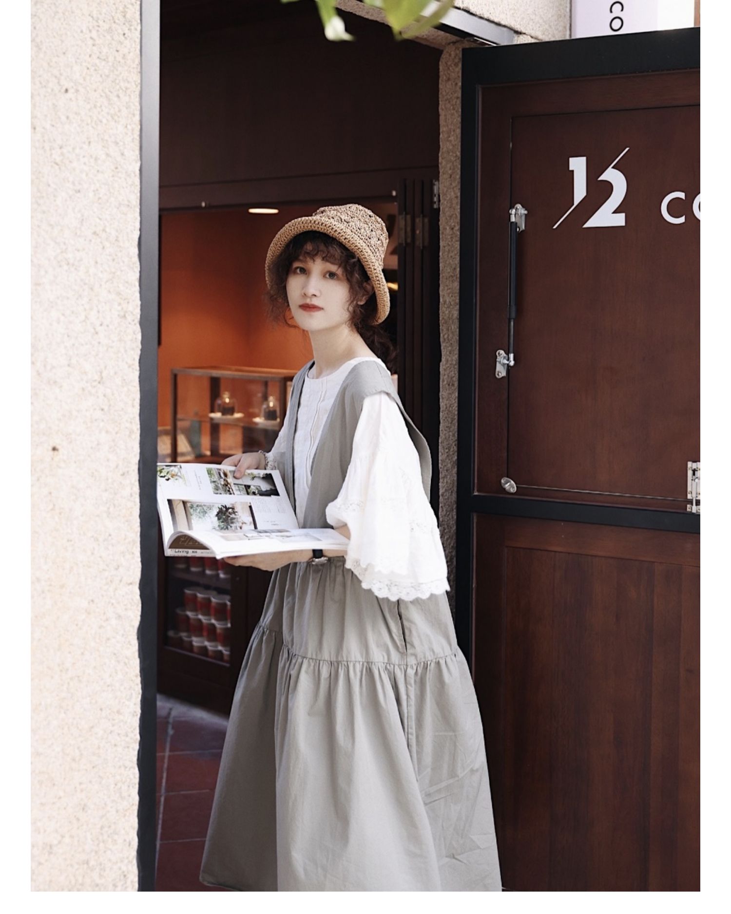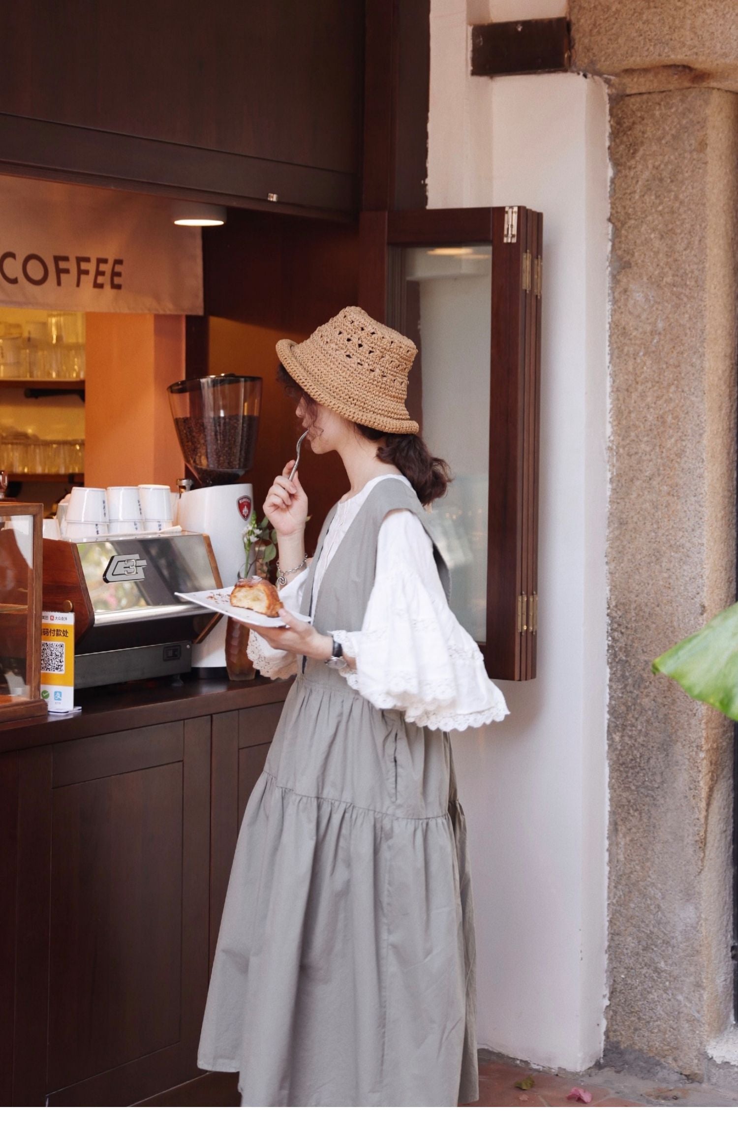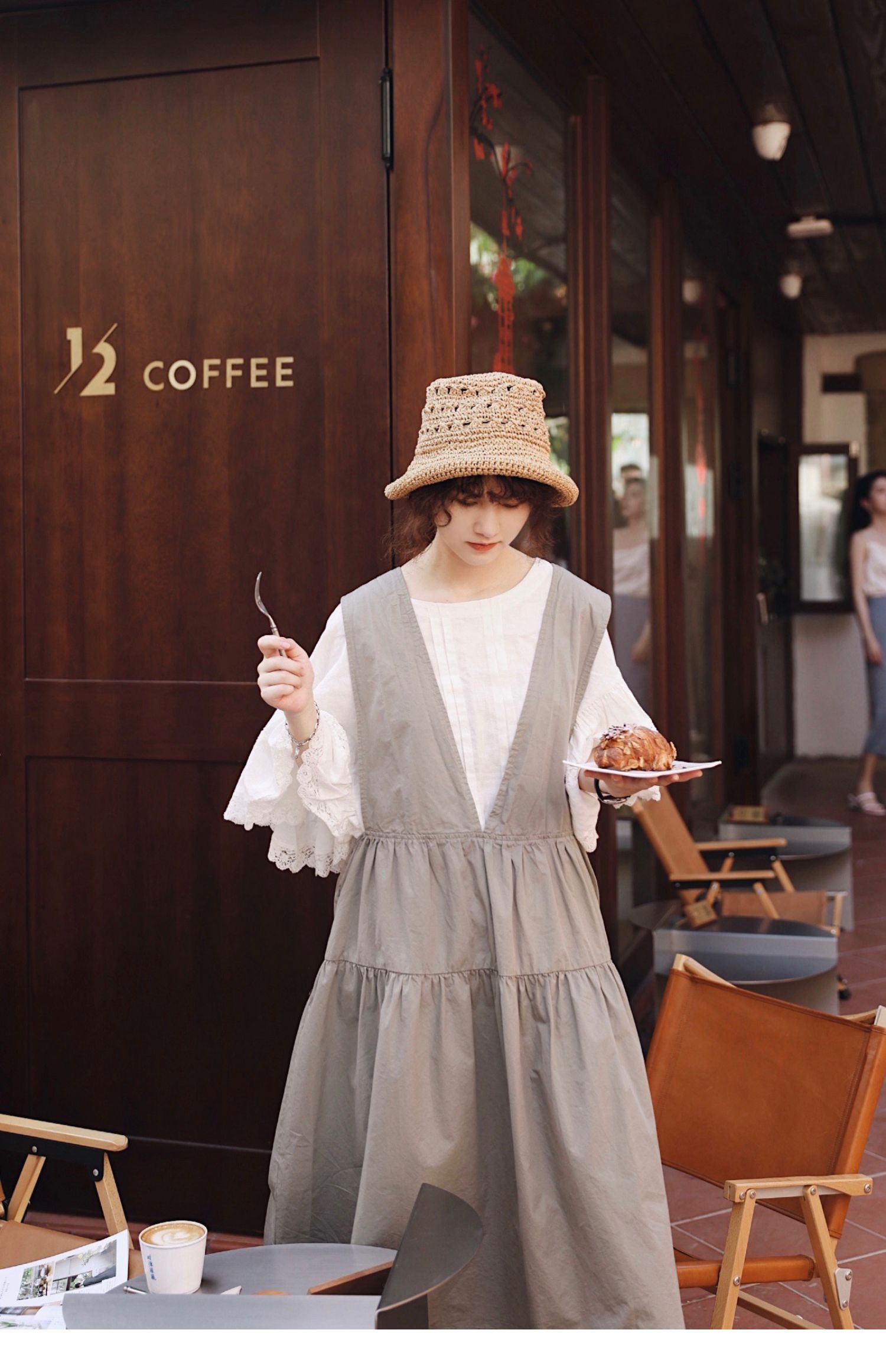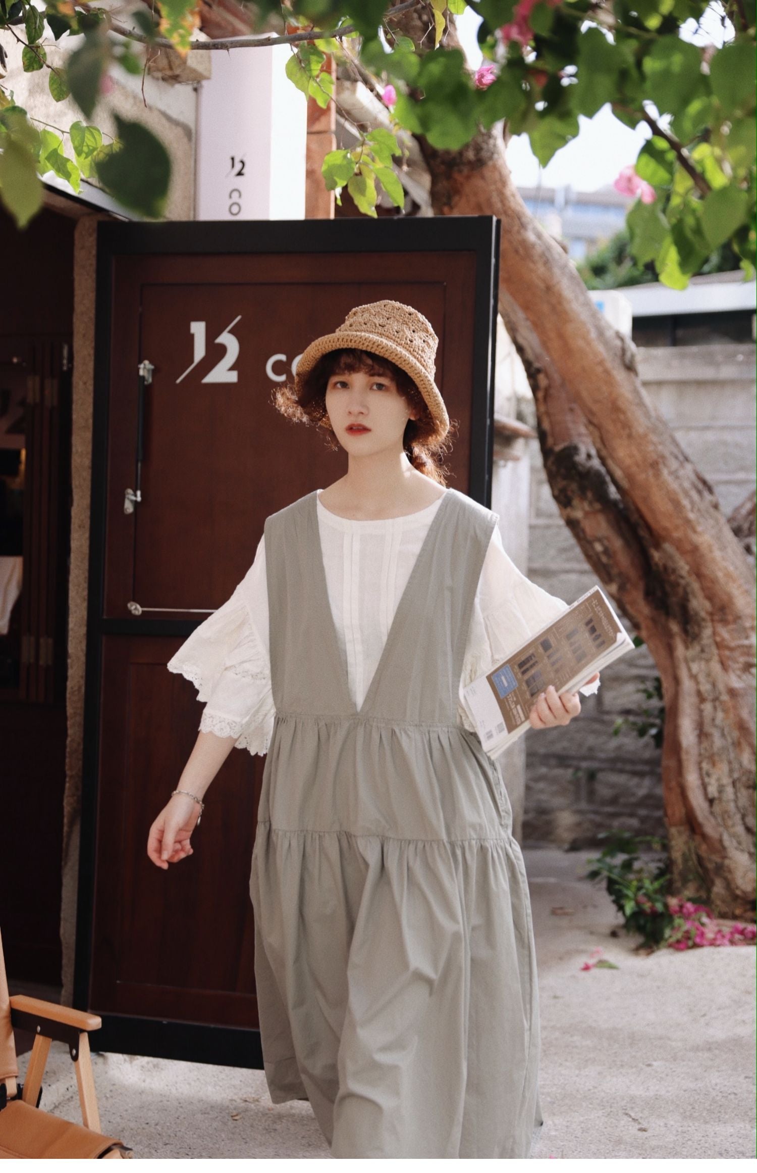 グレーグリーンの色味が◎コットン ジャンパースカート ドレス