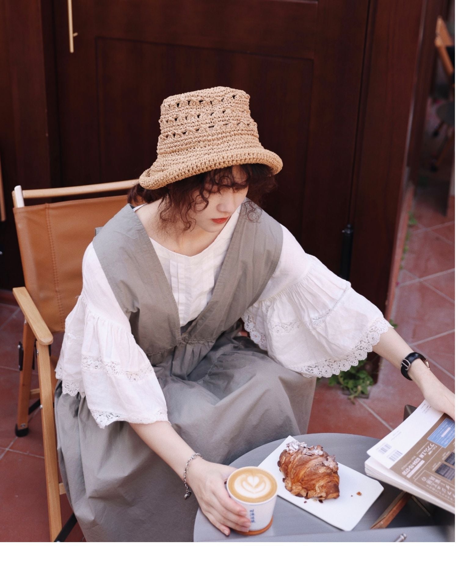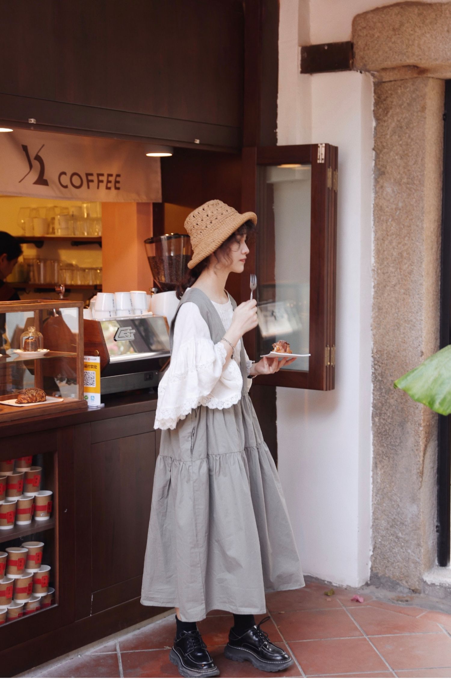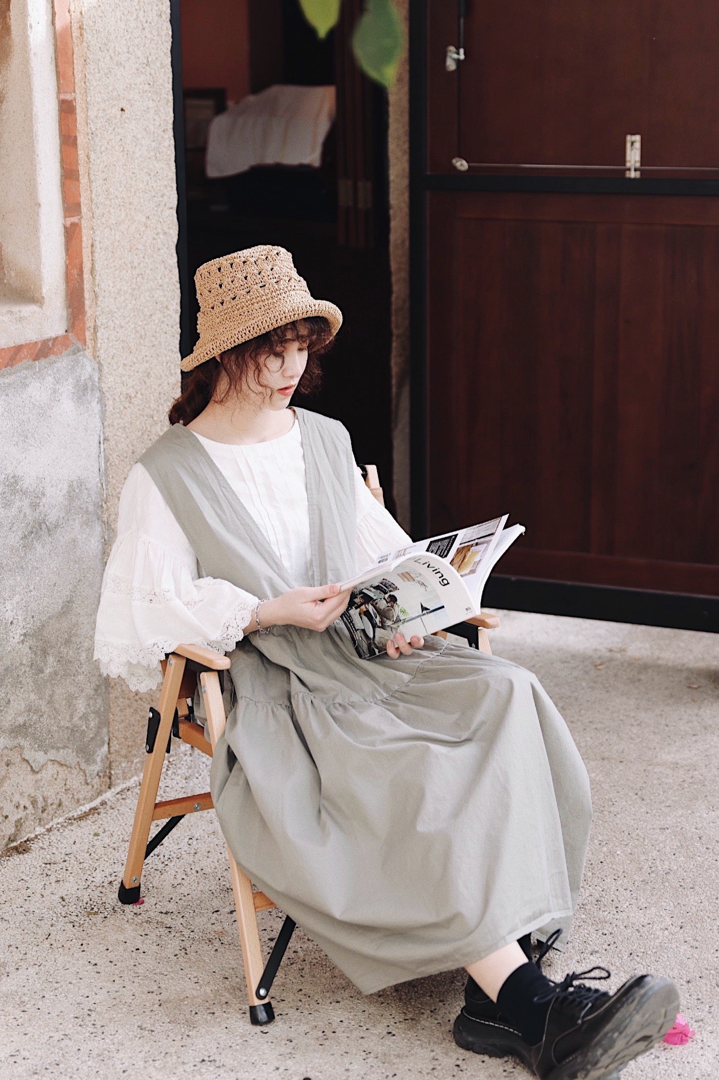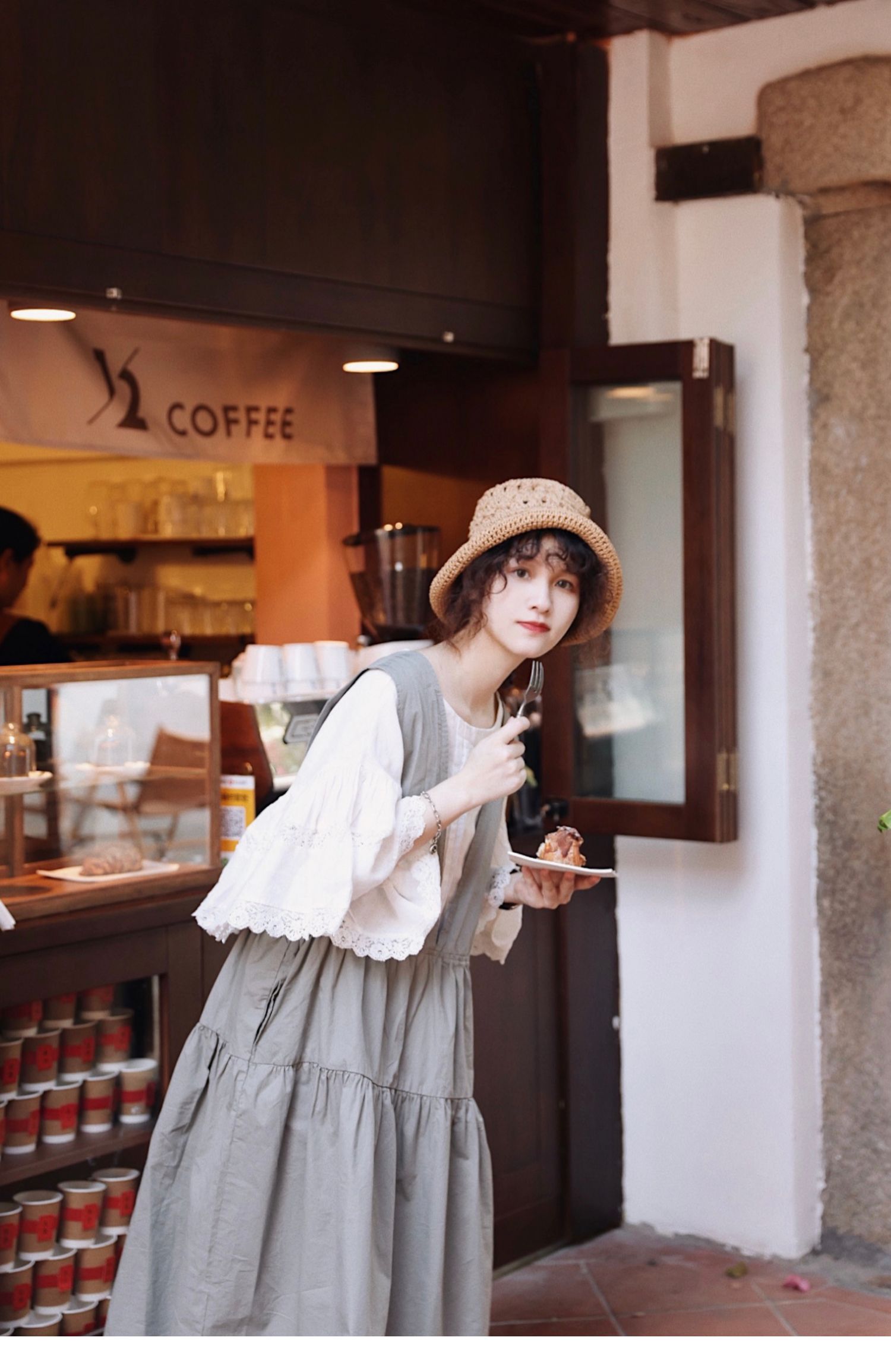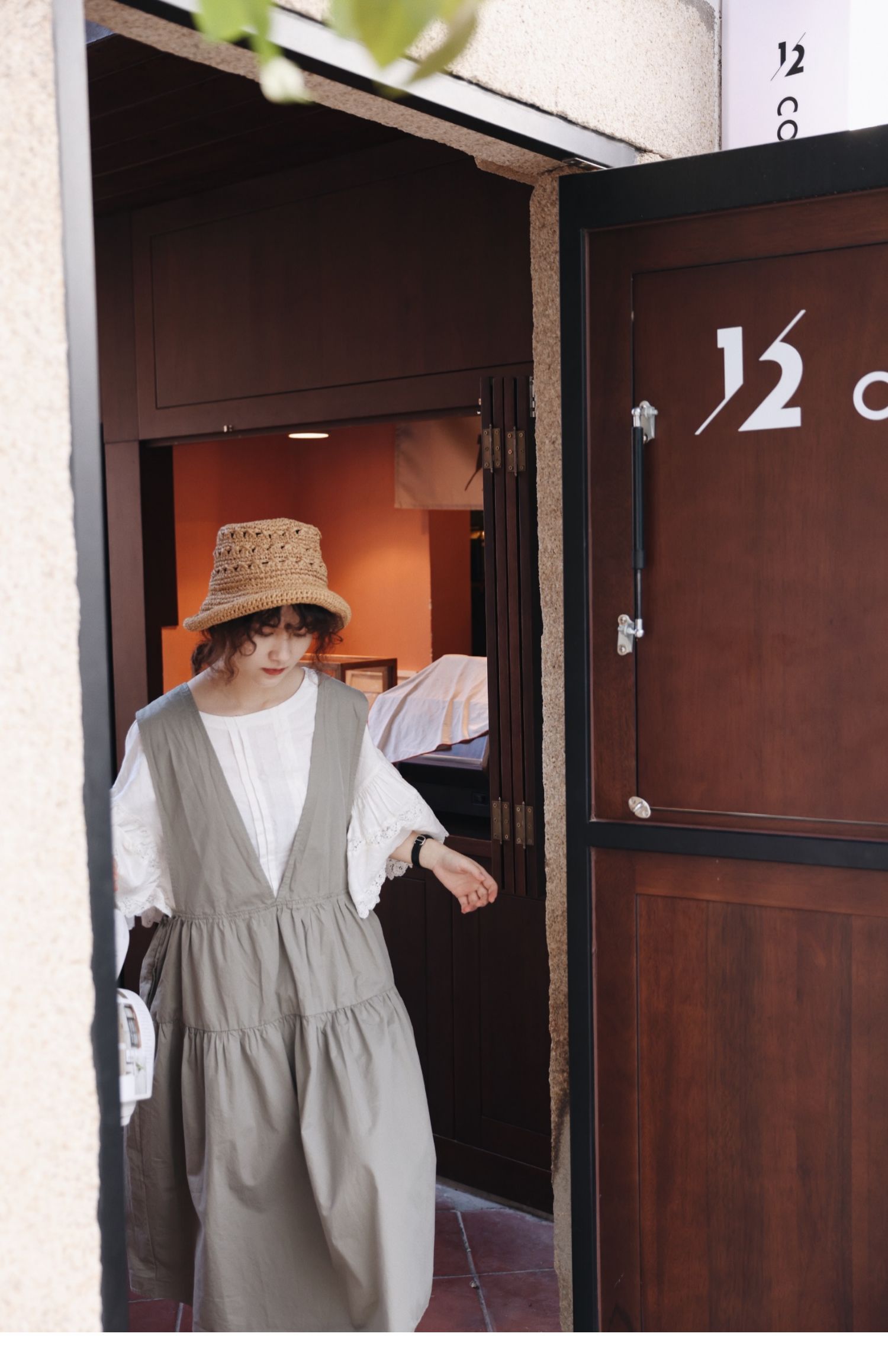 グレーグリーンの色味が◎コットン ジャンパースカート ドレス